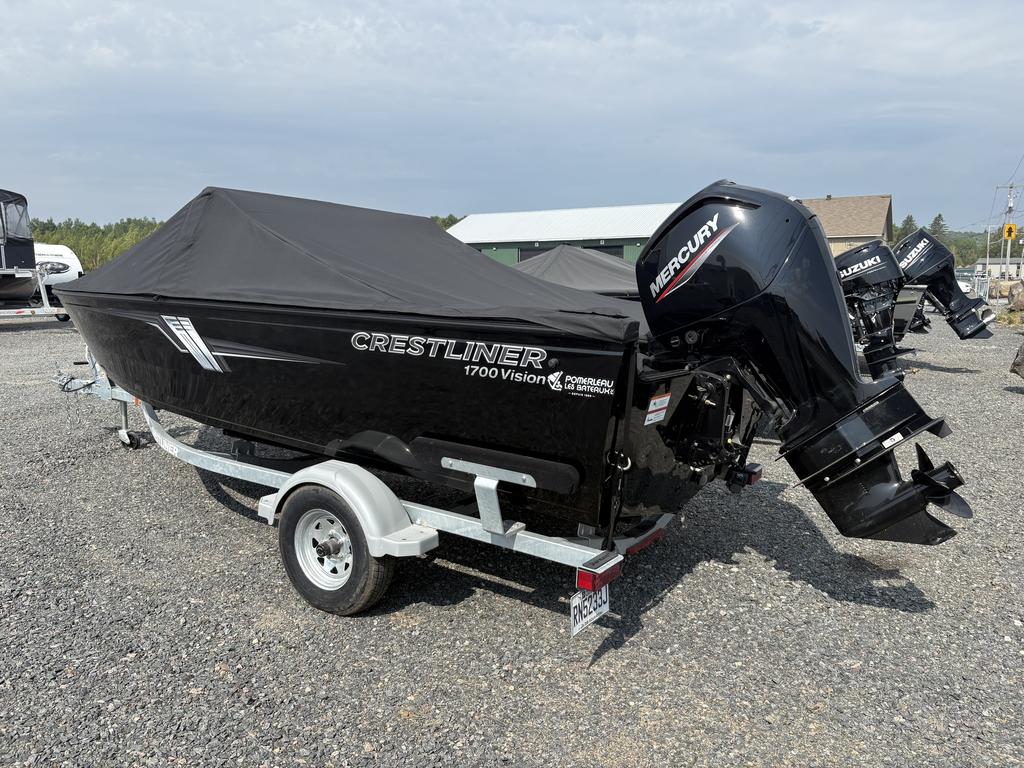 2023 CRESTLINER 1700 VISION 17 PIEDS. REMORQUE GALVANISÉ.<br><br>FINANCEMENT DISPONIBLE<br><br>$42500 PAS DE TAXE SUR LE BATEAU.<br><br> Maximum de 6 passagers<br><br> Vente d'accommodation pas de tx sur le bateau.<br><br> Toile de protection. Beaucoup de rangement<br><br> Sonar neuf.<br><br> Trousse de securitée <br><br> Bouées, ancre<br><br> Veste <br><br> Remorque inclus avec spare.<br><br>Chez Maximum Marine, nous avons le soucie du service à la clientèle.<br><br>C'est pourquoi nous vous servons depuis plus de 20 ans!!<br><br>Maximum Marine (2850 rue des apprentis, Shawinigan)<br><br>819/538/8899 Demander un conseiller.<br><br><br><br>Mots clés: Bateau de pêche, chaloupe, yamaha, Mercury, SmokerCraft, Mirrocraft Troller<br><br>Photo à titre indicatif, Prix et description peuvent changer sans préavis.