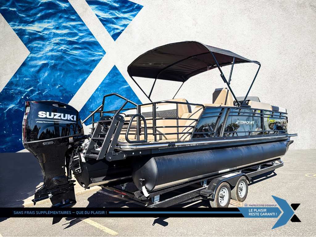 Ponton SLS-3 Q DH moteur 200 hp inclus ?? Starcraft SLS 3 Q DH 2026 – Luxe, Performance et Design Réinventé ! ???? Le Starcraft SLS 3 Q DH 2026, équipé d’un puissant moteur Suzuki 200 HP, combine performance sportive et confort haut de gamme. Avec ses 3 quilles HMX et ailerons sport, ce ponton offre des sensations de navigation proches d’un bateau tout en assurant stabilité et maniabilité exceptionnelles. Son nouveau design 2026, sa console complètement repensée et ses nouveautés exclusives redéfinissent l’expérience sur l’eau. ?? Caractéristiques principales : ? Moteur Suzuki 200 HP – Performance dynamique et fiable. ? Longueur : 24'8'' – Parfait pour accueillir famille et amis. ? Capacité : Jusqu’à 13 passagers – Convivialité assurée. ? Moteur maximal 300 HP – Potentiel de puissance supplémentaire. ? Tubes de 25 pouces – Maniabilité et stabilité accrues. ? Couleur Gris Mat – Élégance et modernité inégalées. ? Rambardes arrière noires matt powdercoat avec tour de tire intégré – Style sportif et fonctionnel. ? Plancher Teak Weave – Chic et durable. ?? Ambiance et Confort Premium : ? Nouvelle configuration intérieure avec grand lit inclinable 4 positions – Détente ultime au soleil. ? Deux grands sièges capitaine – Confort supérieur pour pilote et copilote. ? Console de conduite redessinée et plateforme surélevée pour le conducteur – Expérience de pilotage optimisée. ? Éclairage sous le pont Babbitto – Ambiance spectaculaire de nuit. ? Porte-gobelets illuminés – Praticité et touche haut de gamme. ? Salle d’habillage intégrée – Discrétion et confort. ? Volant Verona inclinable + direction hydraulique Seastar – Conduite fluide et précise. ?? Système audio et technologie : ?? Radio AM/FM/USB/AUX/Bluetooth Wet Sound – Connectez et profitez de votre musique. ? Système Audio Plus 225 – Puissance et clarté sonore. ? GPS profondimètre Hélix 5 – Navigation et relevés précis. ? Indicateur de trim – Ajustement optimal du moteur. ?? Performances et équipements supplémentaires : ? Lumières de navigation et d’amarrage – Sécurité garantie. ? Prise 12 volts + lumière de courtoisie – Praticité et confort. ? Toit bimini électrique entièrement redessiné – Modernité et facilité. ? Échelle Lillipad Revo – Idéale pour tous, incluant animaux et personnes à mobilité réduite. ? Ensemble 3 quilles HMX avec sous-plancher aluminium – Sensations sportives. ? Option toit full campeur – Pour prolonger vos séjours sur l’eau. ?? Un modèle 2026 qui redéfinit luxe et performance. Êtes-vous prêt à élever vos moments sur l’eau avec ce ponton d’exception ? Contactez-nous dès aujourd’hui pour réserver le vôtre ! ? La marque Starcraft Marine, chez Groupe Motoplex, offre des pontons et des bateaux stylés, polyvalents et sécuritaires à un excellent rapport qualité prix. Avec plus de 100 ans d’expérience en fabrication de bateau, Starcraft Marine est une marque établie et de confiance. De plus, une garantie à vie limitée plus une garantie complète de six ans assurent la durabilité de votre bateau. GARANTIE PROLONGÉE jusqu'à 4 ans disponible et plan d’entretien Financement approuvé — 1re, 2e et 3e chance au crédit! Testez-nous et trouvez la meilleure solution, au meilleur taux. Votre incontournable du financement ! PLEASE DON'T HESITATE TO CONTACT US, WE SPEAK ENGLISH AS WELL ! Nous prenons tout véhicule d’échange Prix Garanti. AUCUN FRAIS CACHÉS, prix affiché valide sur financement ou paiement comptant. *(taxe en sus) We speak English contact us. LIVRAISON PARTOUT AU Québec Mentions légales au financement, consultez notre site Internet. GARANTIE PROLONGÉE jusqu'à 4 ans disponible et plan d’entretien disponible uniquement chez groupe motoplex